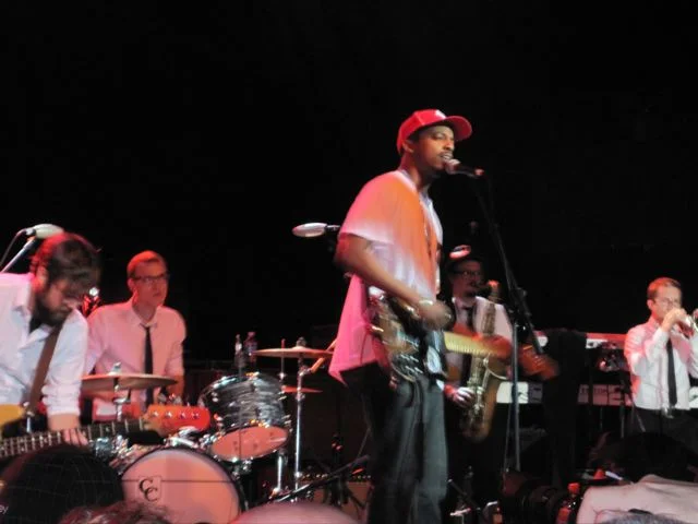 We had a slice of pizza together, then I headed back across the Congress Ave. bridge and made my way to the Austin Music Hall in the southwestern part of downtown. I walked in to catch a few songs from Mayer Hawthorne, a Detroit soul/R 'n' B singer, who maybe if I'd been prepared I'd've appreciated but instead made me wonder whether the guy's white-boy take on rap and soul was an odd joke I just didn't get.
